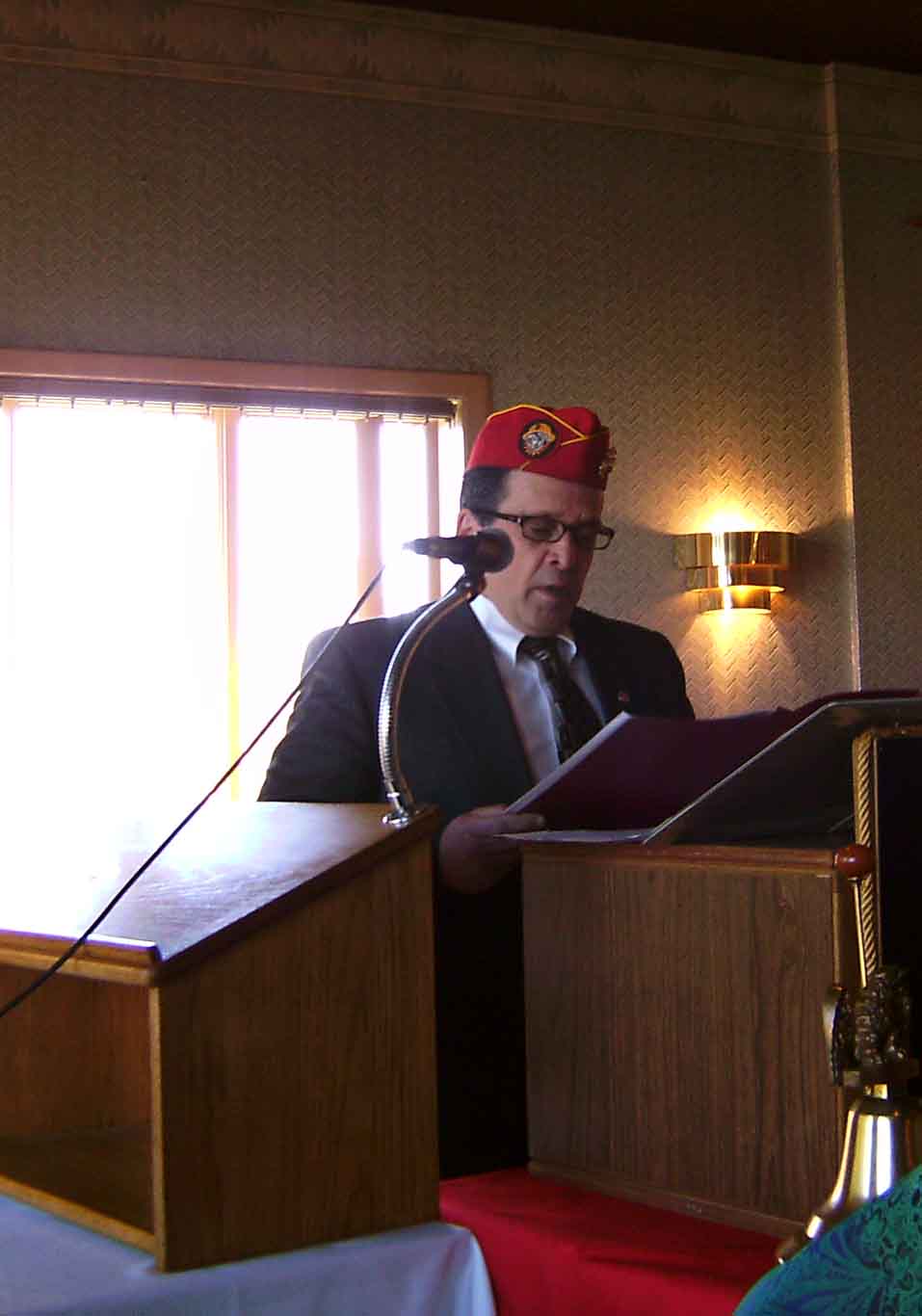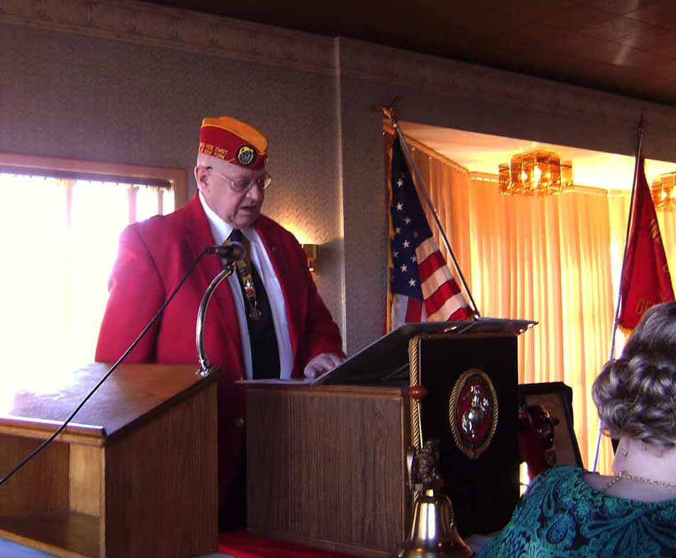 Marine Thomas Marrocco, Jr. Vice Commandant reading Lejeune's Charge